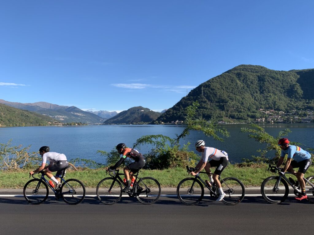 I ciclisti della Tre Valli Varesine che costeggiano il Lago di Ceresio.